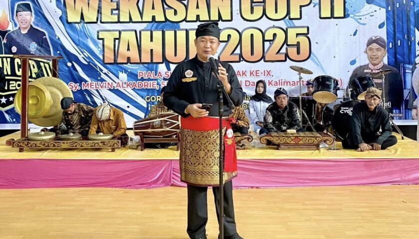 PONTIANAK, MENITNEWS.id – Bupati Ketapang, Alexander Wilyo, menghadiri pembukaan Kejuaraan Terbuka Pencak Silat Wekasan Cup II 2025 se-Kalimantan Barat, Jumat (22/8). Acara yang berlangsung di Gelanggang Olahraga Terpadu Ayani Pontianak ini menjadi wadah silaturahmi sekaligus perebutan Piala Sultan Pontianak ke-IX, Syarif Melvin Alqadrie.