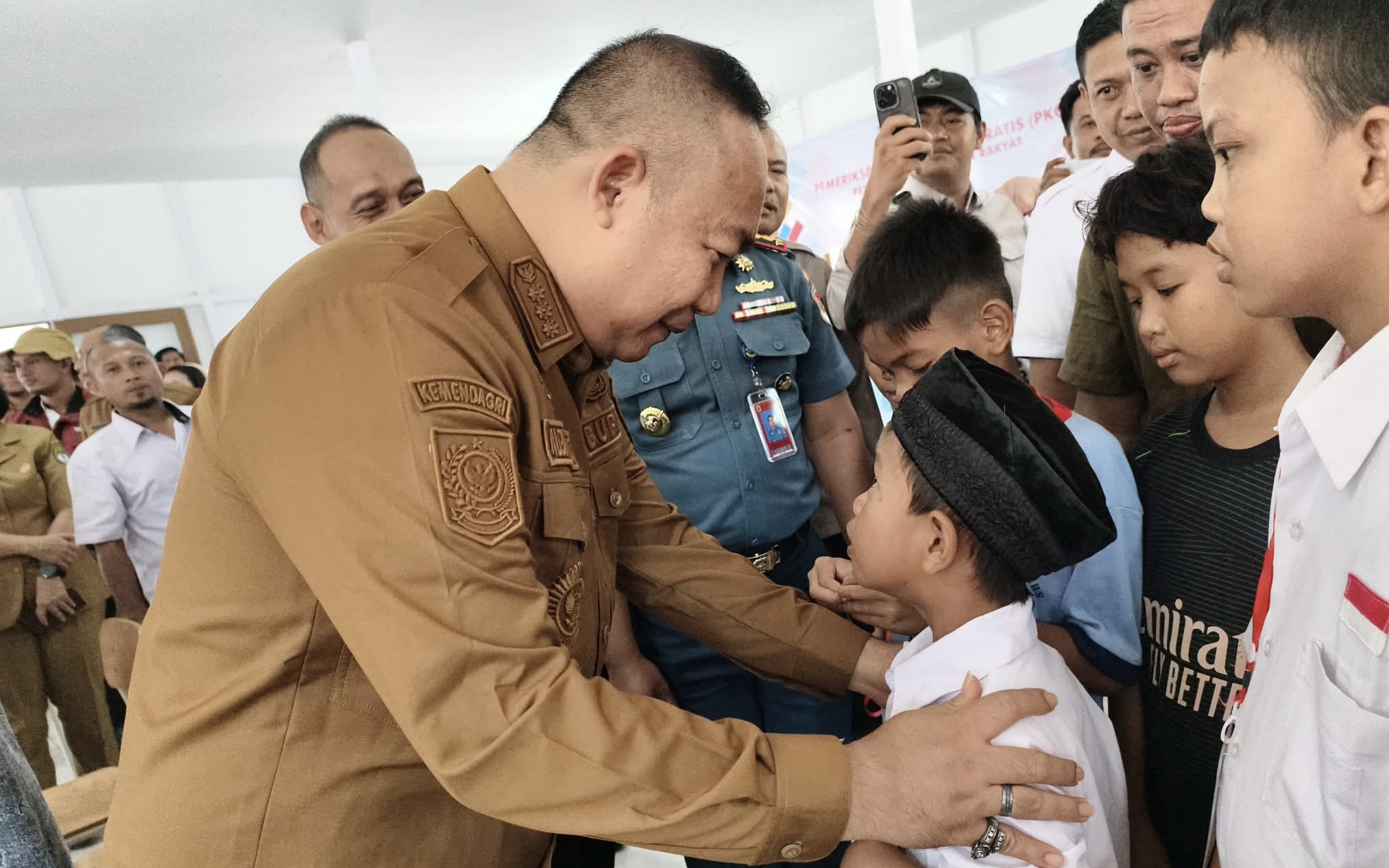 SAPA ANAK-ANAK : Bupati Ketapang, Alexander Wilyo, menyapa anak-anak yang akan mengikuti Program Sekolah Rakyat di Ketapang, Selasa (30/9).