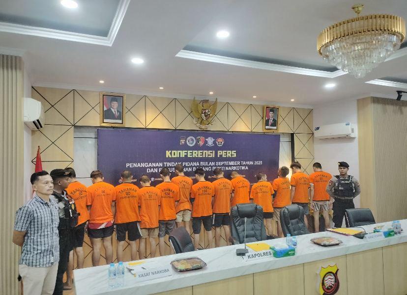 “Sepanjang Januari sampai September 2025, Polres Ketapang menangani 51 kasus. Dari jumlah itu, 35 kasus sudah masuk tahap penyelesaian perkara. Untuk bulan September sendiri, kami mengungkap 11 kasus narkoba dengan 14 tersangka dan barang bukti sabu serta ekstasi,” ungkap AKBP Muhammad Harris.
