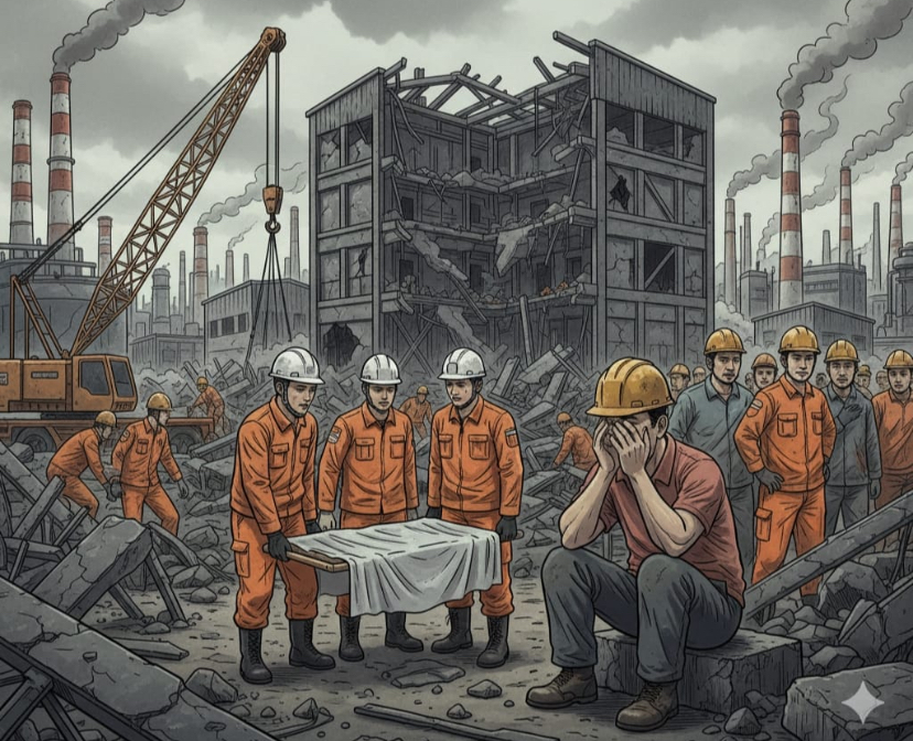 Ia menegaskan kecelakaan kerja itu murni musibah bukan karena kelalaian penerapan Keselamatan dan Kesehatan Kerja (K3). Saat kejadian sedang turun hujan yang mengakibatkan ada bagian bagunan yang tak mampu menahan beban air.