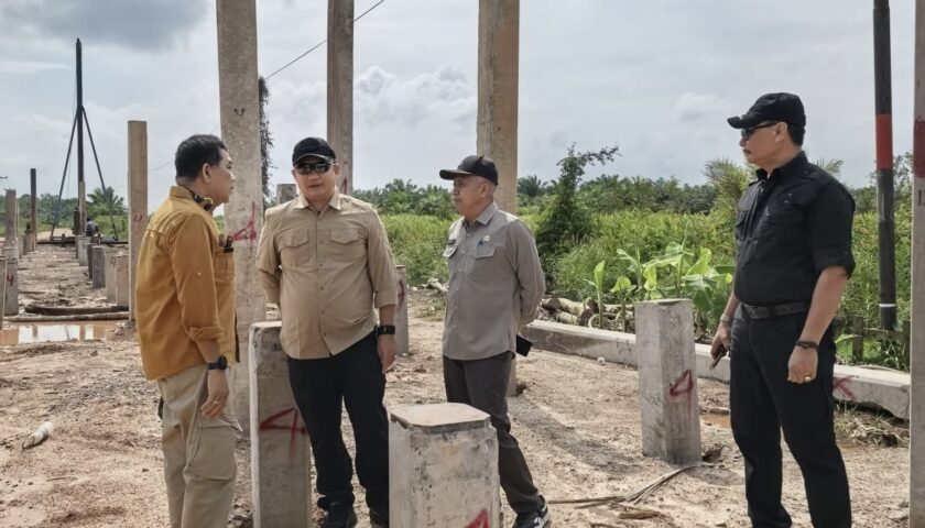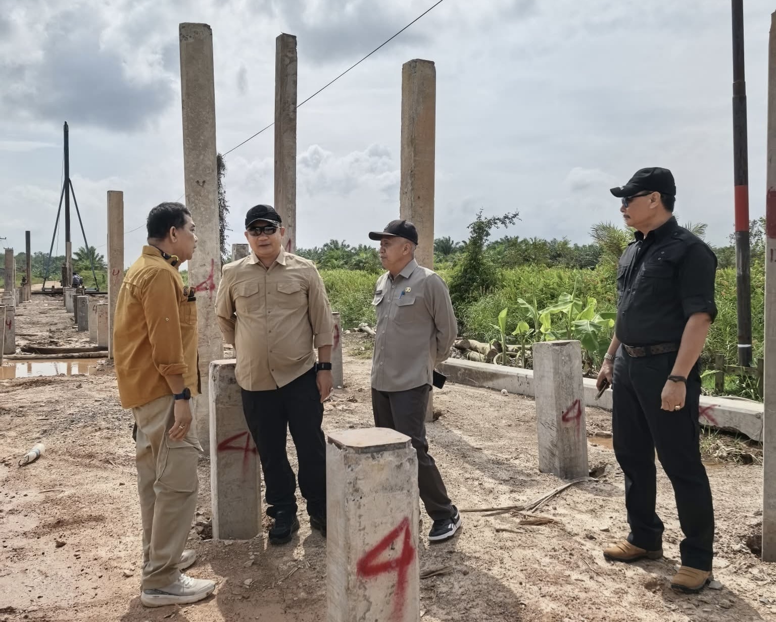 Di Sungai Melayu Rayak, Alex meninjau progres pemasangan tiang pancang (mini pile) pada ruas Palan Pelang–Kepuluk, serta memantau perbaikan jalan melalui program CSR gotong royong bersama perusahaan-perusahaan di sekitar wilayah tersebut.