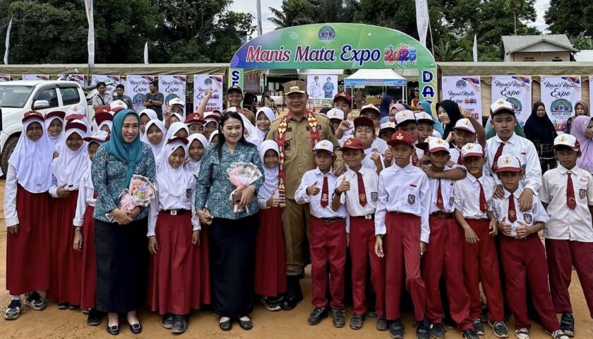 KETAPANG, MENITNEWS.id – Ratusan siswa Sekolah Dasar (SD) di Kecamatan Manis Mata menyambut kedatangan Bupati Ketapang, Alexander Wilyo, Senin (13/10). Kedatangan bupati dan istri dalam rangka menghadiri Manis Mata Expo 2025.