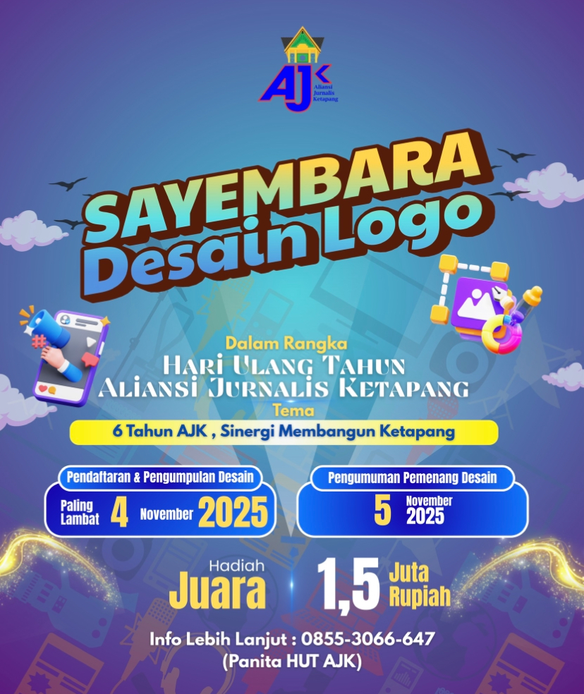 KETAPANG, MENITNEWS.id – Dalam rangka memperingati Hari Ulang Tahun (HUT) ke-6, Aliansi Jurnalis Ketapang (AJK) resmi menggelar Sayembara Desain Logo yang terbuka bagi masyarakat Kabupaten Ketapang. Kegiatan ini menjadi salah satu rangkaian menuju puncak peringatan HUT AJK tahun 2025, dengan mengusung tema “6 Tahun AJK, Sinergi Membangun Ketapang.”
