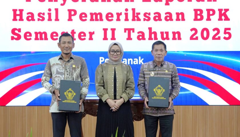 PONTIANAK, MENITNEWS.id – Wakil Bupati Ketapang, Jamhuri Amir, menerima Laporan Hasil Pemeriksaan (LHP) semester II 2025 dari Kepala Badan Pemeriksa Keuangan Republik Indonesia (BPK RI) Perwakilan Kalbar, Sri Haryati, Selasa (13/1).