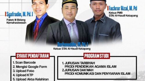 KETAPANG, MENITNEWS.id Sekolah Tinggi Agama Islam (STAI) Al-Haudl Ketapang, resmi membuka Penerimaan Mahasiswa Baru (PMB) Tahun Akademik 2026/2027. PMB tahun ini dibuka dalam dua gelombang dengan sejumlah kemudahan bagi calon mahasiswa. Ketua Panitia PMB STAI Al-Haudl Ketapang, Fachrur Rizal mengatakan, bahwa PMB tahun akademik 2026/2027 dirancang untuk menjangkau lebih banyak generasi muda yang ingin melanjutkan pendidikan tinggi berbasis keislaman. “PMB STAI Al-Haudl Ketapang tahun ini kami buka dengan sistem yang lebih mudah dan fleksibel. Calon mahasiswa cukup melakukan pendaftaran melalui scan barcode atau Google Form yang telah kami sediakan,” ujar…
