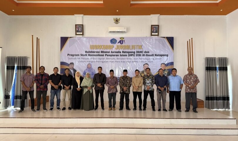KETAPANG, MENITNEWS.ID – Aliansi Jurnalis Ketapang (AJK) berkolaborasi dengan Program Studi Komunikasi Penyiaran Islam (KPI) STAI Al-Haudl Ketapang menggelar Workshop Jurnalistik di Auditorium Soenardi Basnu, Ketapang, Minggu (09/2/2026).