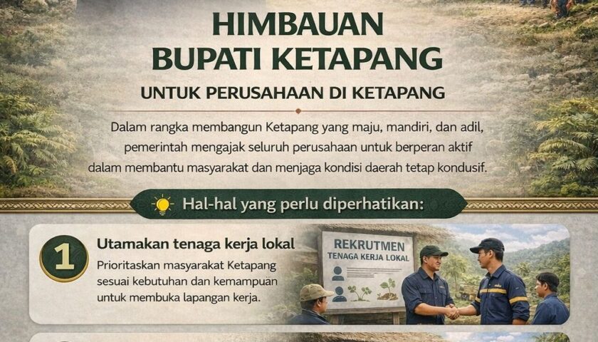 KETAPANG, MENITNEWS.ID – Pemerintah Kabupaten Ketapang mengimbau seluruh perusahaan yang beroperasi di wilayahnya untuk memprioritaskan tenaga kerja lokal serta aktif menjaga kondusivitas sosial di lingkungan operasional.