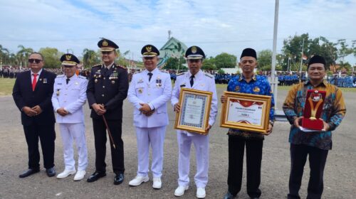 KETAPANG, MENITNEWS.id – Upacara peringatan Hari Ulang Tahun ke-80 Kemerdekaan Republik Indonesia berlangsung penuh makna di Halaman Kantor Bupati Ketapang, Minggu (17/8). Bupati Ketapang, Alexander Wilyo, bertindak sebagai inspektur upacara. Upacara dimulai pukul 07.30 WIB. Alex memimpin pengucapan Pancasila dan dilanjutkan dengan mengheningkan cipta yang diikuti seluruh peserta. Ketua DPRD Kabupaten Ketapang, Achmad Sholeh membacakan teks proklamasi. Momentum pengibaran Sang Saka Merah Putih berlangsung penuh kekhidmatan. Pasukan Pengibar Bendera Pusaka (Paskibraka) Kabupaten Ketapang yang terdiri dari putra-putri terbaik daerah sukses melaksanakan tugas dengan sempurna. Rangkaian upacara juga diisi dengan penyerahan…